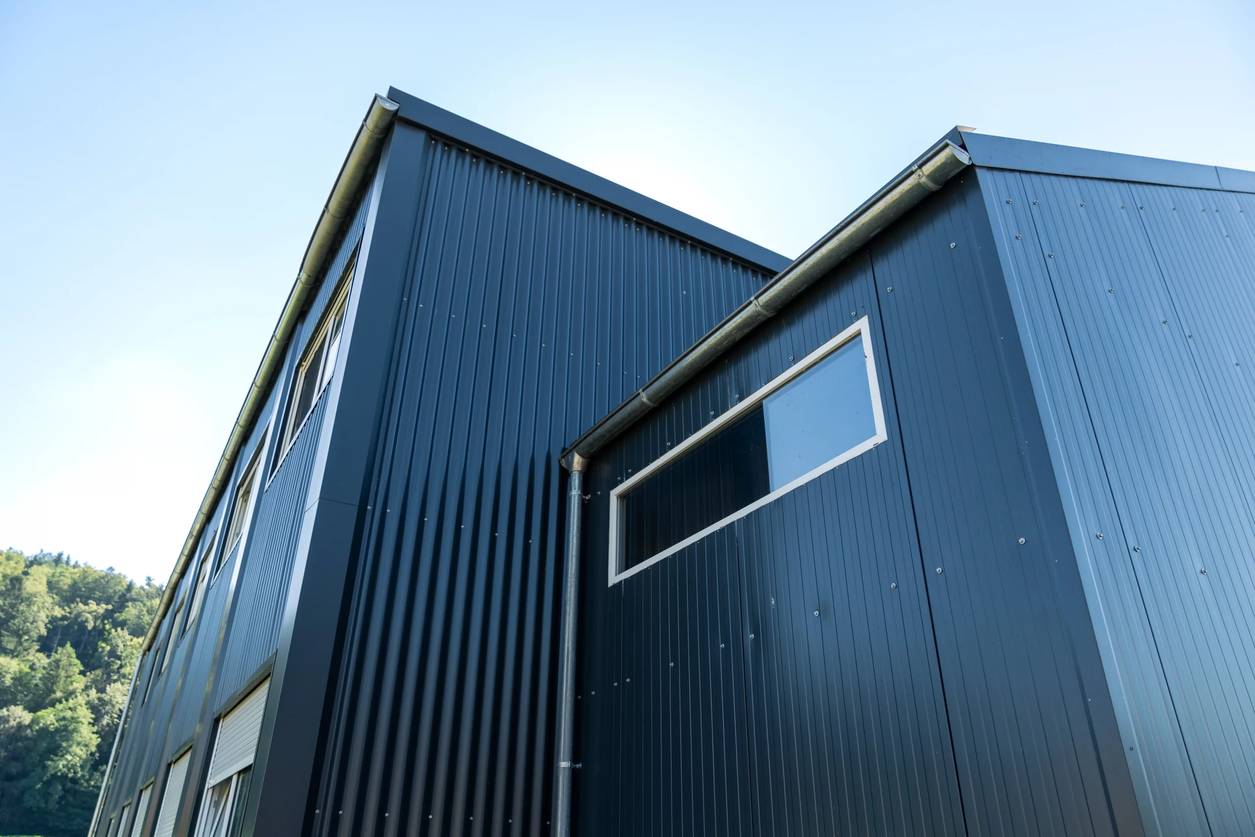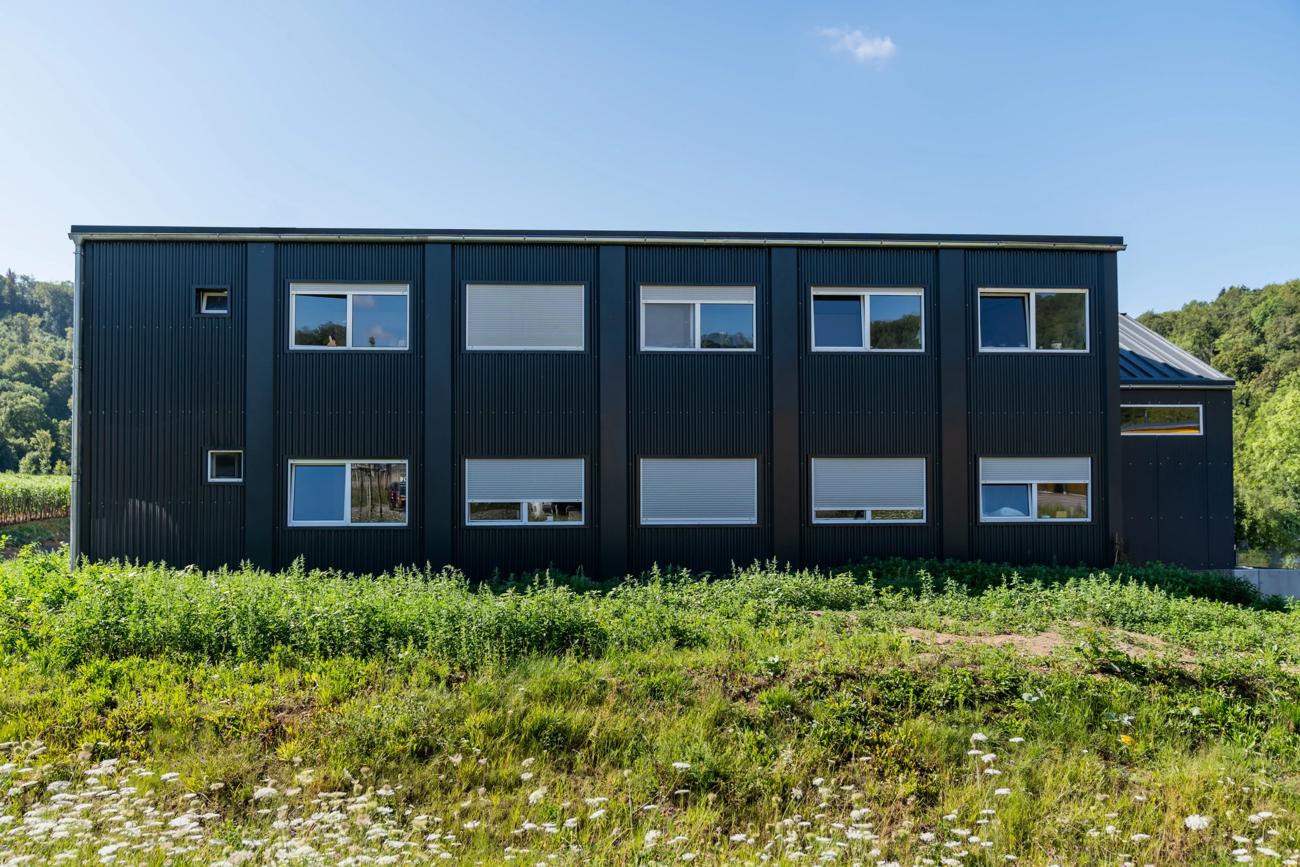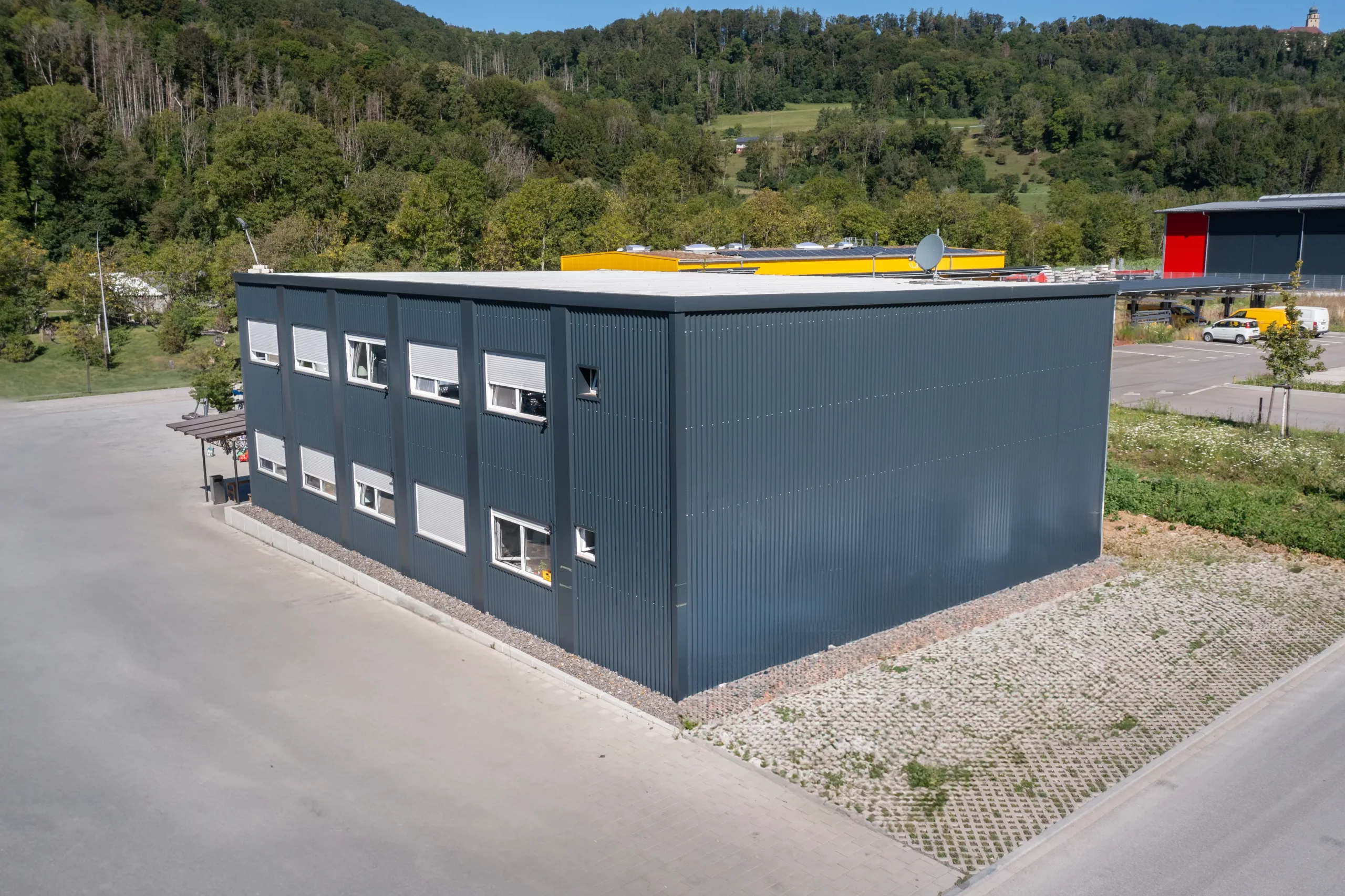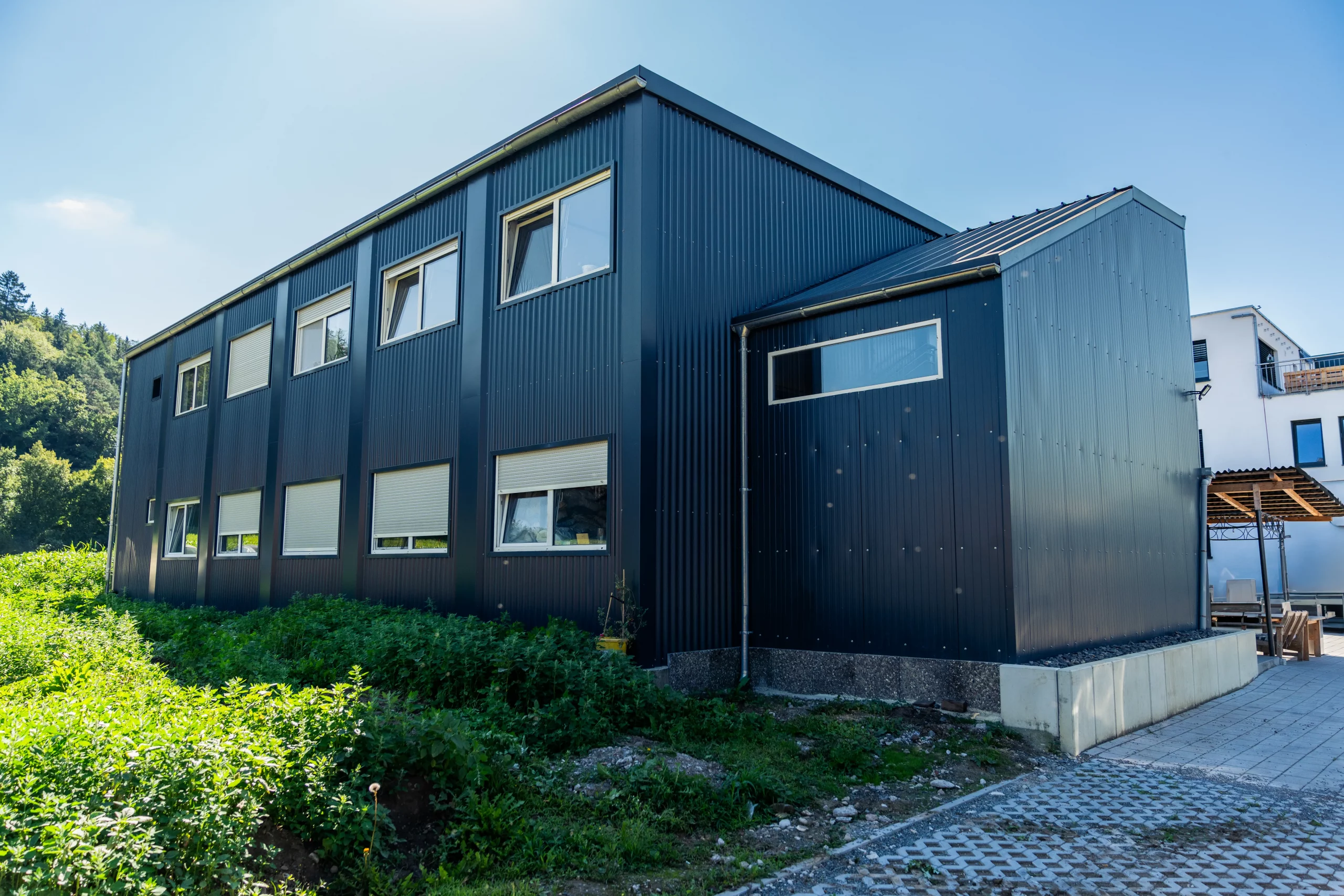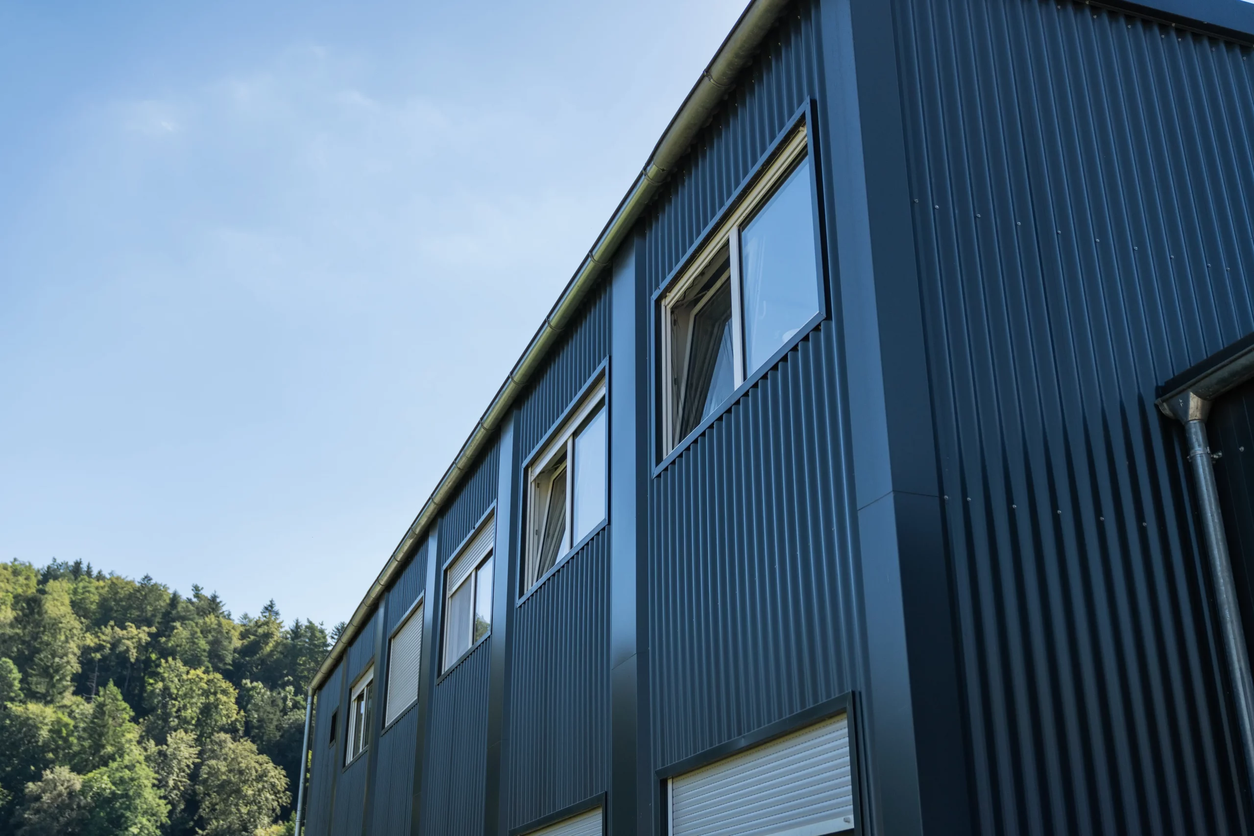 So entsteht ein ruhiges Gesamtbild, das eher an einen klassischen Gewerbebau erinnert als an eine modulare Lösung.